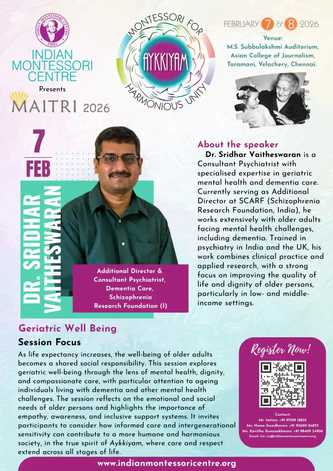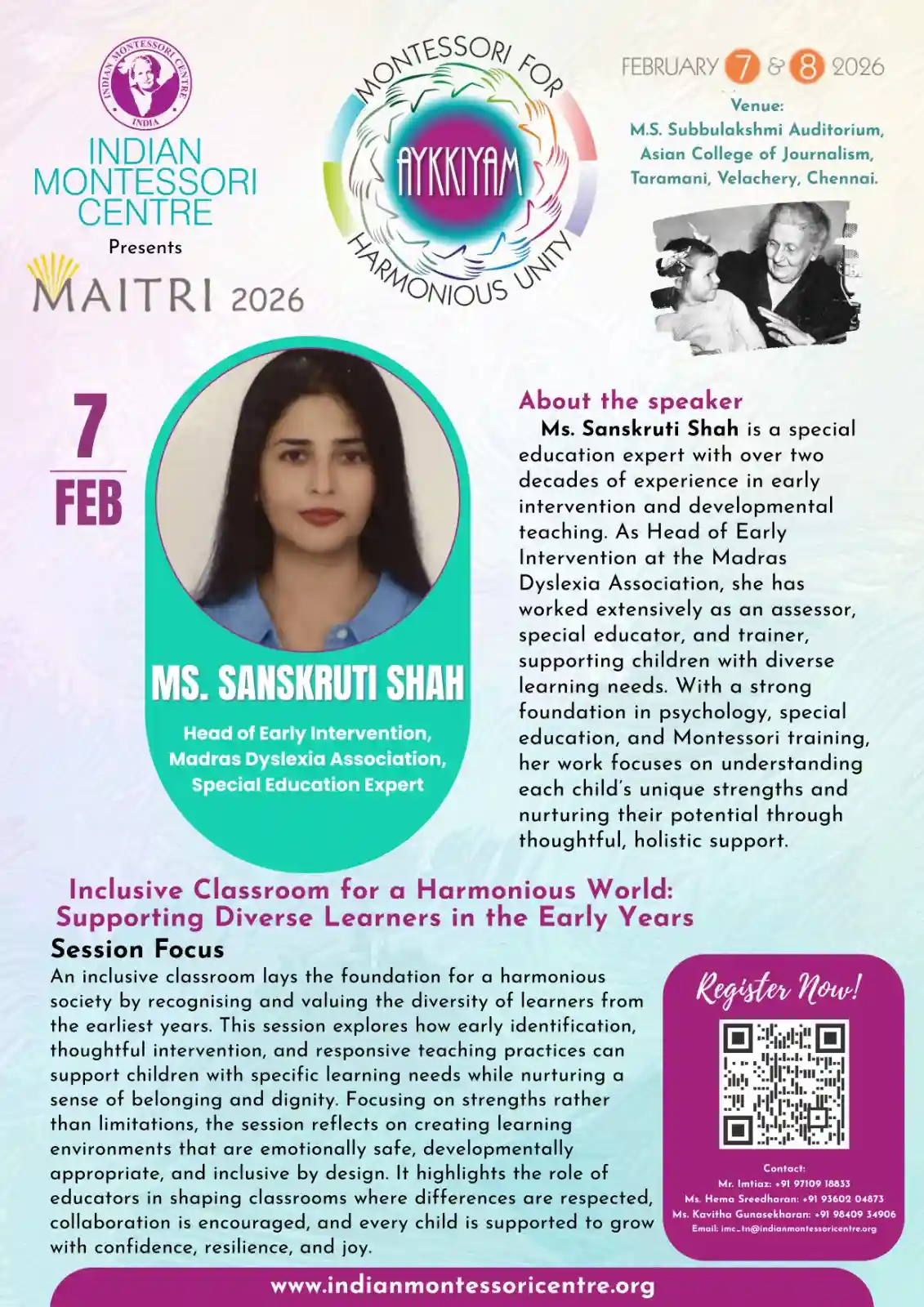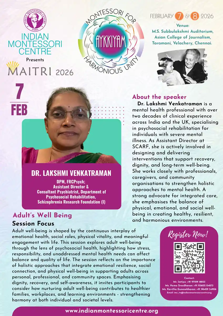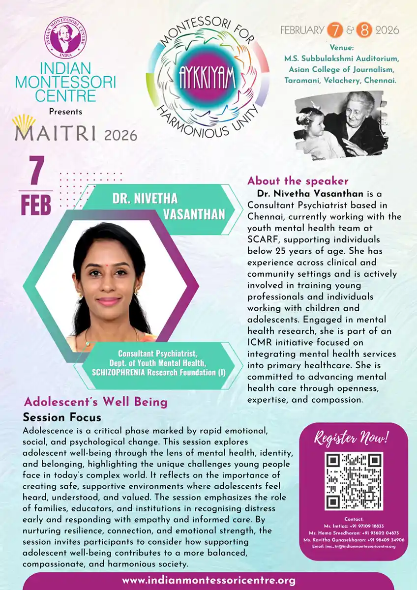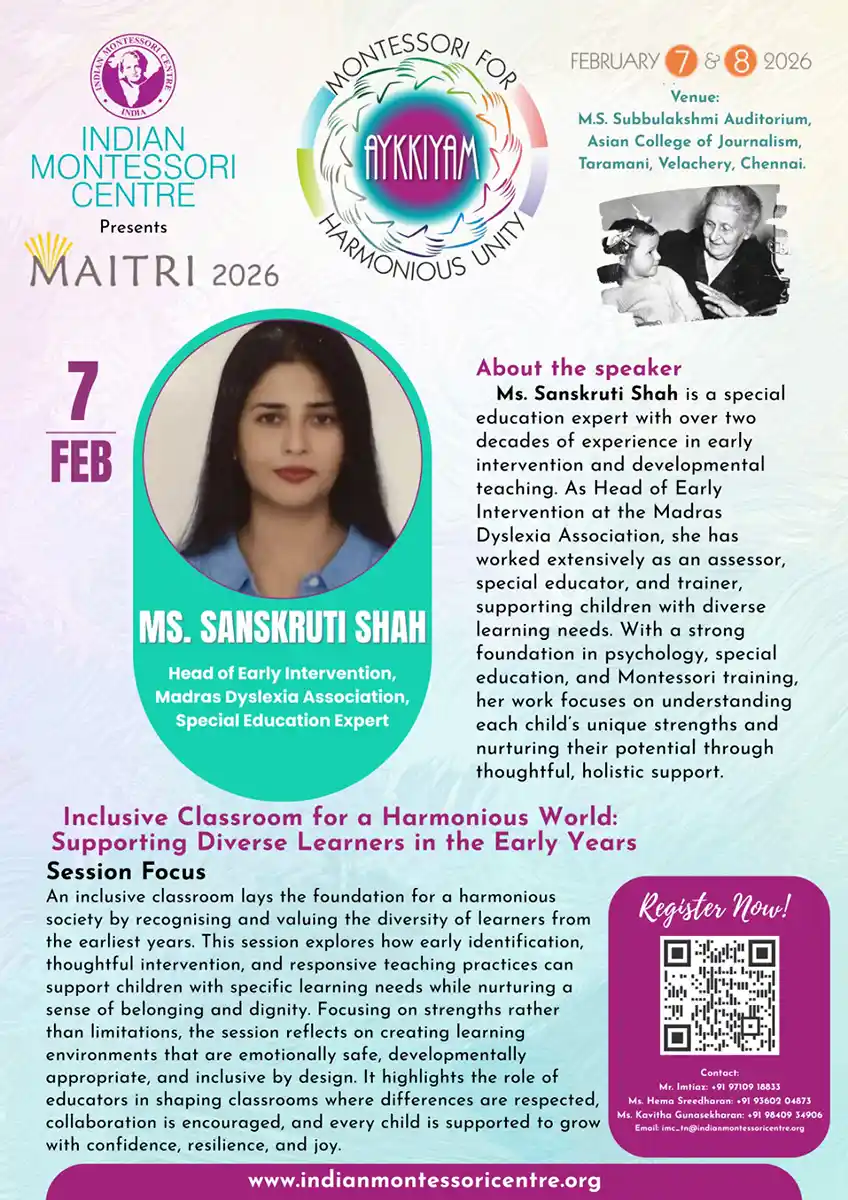 The Indian Montessori Centre has been organizin conferences and gatherings for the past many years for fellowship and professional development of educators, be they teachers, trainers, heads of schools, alumni or parents. It is a time to come together as a group to share, learn and synchronise one’s thoughts and actions in the journey of child development by anyone who is invested in the trueservice of mankind and nature.